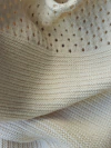 Termina con puño en canelón finito en ambos extremos y en el cuerpo trenzas finitas paralelas verticales. Es liviana y suave.