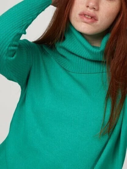 Polerón con lycra, de cuello volcado tejido con canelones, igual que las mangas que quedan ajustadas, no así el cuerpo que es más bien cuadrado.