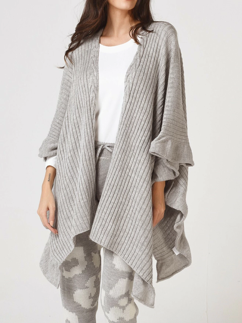 Ruana con terminación de una gran trenza en cada uno de los bordes delanteros y 2 en el centro de la espalda. El resto es canelón lo que le da un movimiento divino y gran amplitud. El ruedo termina con volados. Es liviana y muy suave y calentita. Para tener a mano siempre, hasta la podés usar sobre una campera o abrigo.