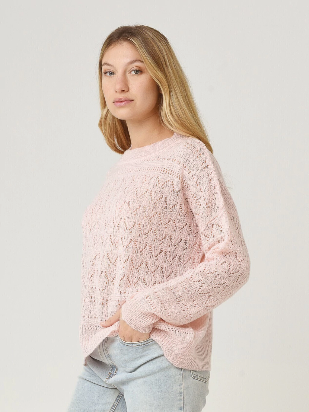 Un sweater amplio, cómodo, bastante largo. Finito pero calentito. Tiene un gran cuello a partir del cual se arman hileras de dibujos en todo el frente y mangas. Viene en muchos colores divertidos para combinar con todos tus looks!