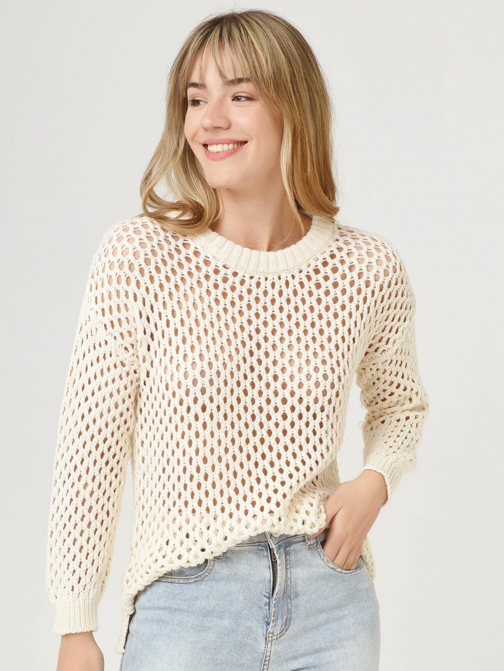 Sweater completamente calado, el must have de la temporada. Usalo con una musculosa básica abajo o con ropa interior nude o contrastante... todo le queda bien y todo dependerá de qé look le quieras dar. Tiene un buen cuello, y unos buenos puños y todo en hilo de algodón. La calidad salta a la vista.