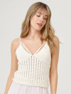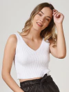 Finito y tejido en morley se adapta a varios talles. Viene en talle único. De largo, desde el bretel al ruedo mide 44 cm y de ancho 30 cm de costura a costura. Con la prenda apoyada sin estirar. El frente si lo estiro llega más o menos a los 49 cm.