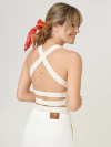 Jugado, si te animás usalo sin corpiño, si no, probalo con uno sin breteles tratando de que te coincida en la espalda con 1 de las tiras. A veces un pequeño alfiler de gancho ayuda!!